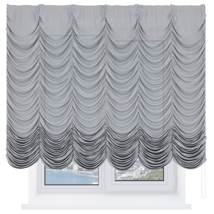 Французская штора лён кашемир серый, карниз верёвочный